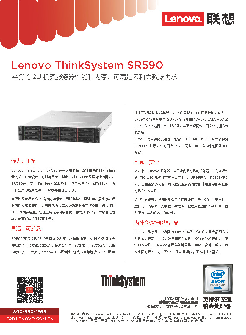 聯想Lenovo SR590服務器 2*4114 10核/2*16G/3*2.4T 10K SAS硬盤